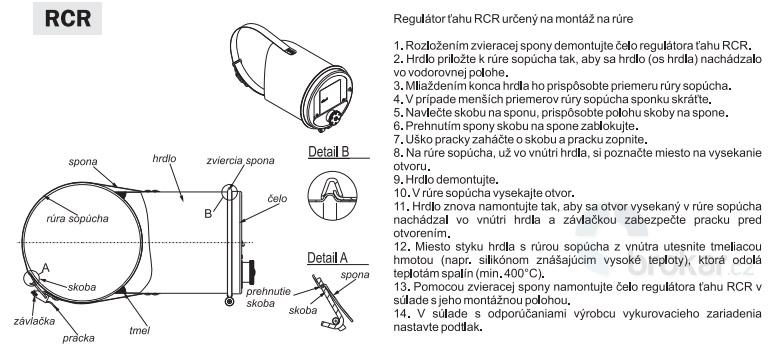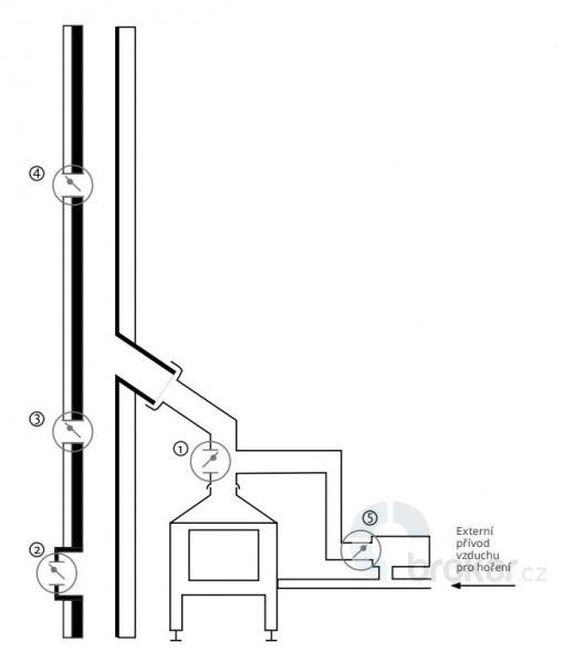 Možnosti umístění regulátoru tahu: na kouřovod, do komínových dvířek, do neúčinné výšky komína, do účinné výšky komína, na kouřovod s přívodem externího vzduchu.