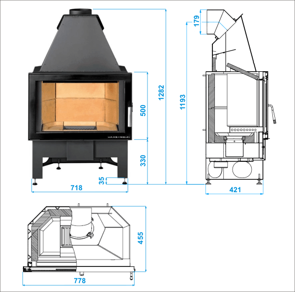 Vývod kouřovodu | vrchní, zadní, Ø 180 |