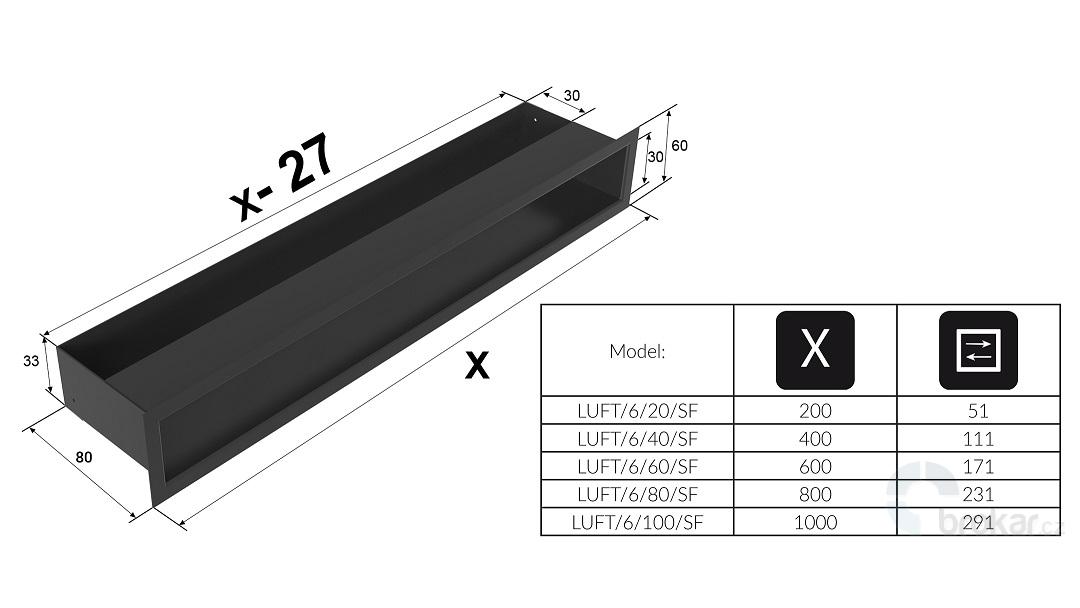 Mřížka Kratki 6 x 60 x 8 cm černá, rovná – moderní minimalistický vzhled