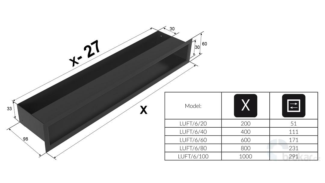 Mřížka Kratki 6 x 60 x 8 cm nerez, rovná – moderní minimalistický vzhled