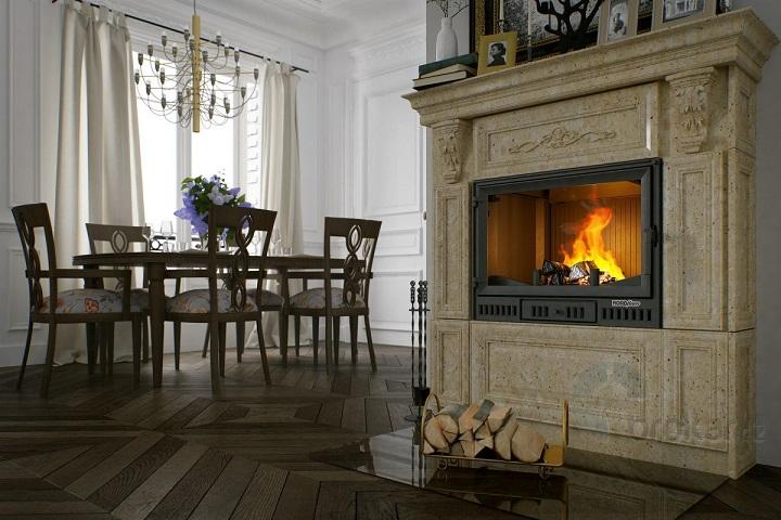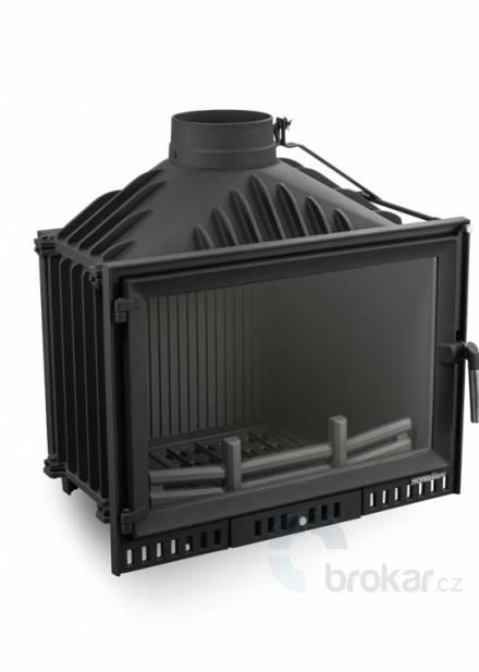 Litinová krbová vložka střední velikosti s rovným prosklením v jednoduchém hladkém provedení rámu se hodí i do modernějších staveb krbů. Celolitinové topeniště pro dlouhou životnost a odolnost dílů, rošt, popelník ve spodní části, zábrana proti vypadávání dřeva, komínová klapka. Výkonná a levná krbová vložka z litiny.