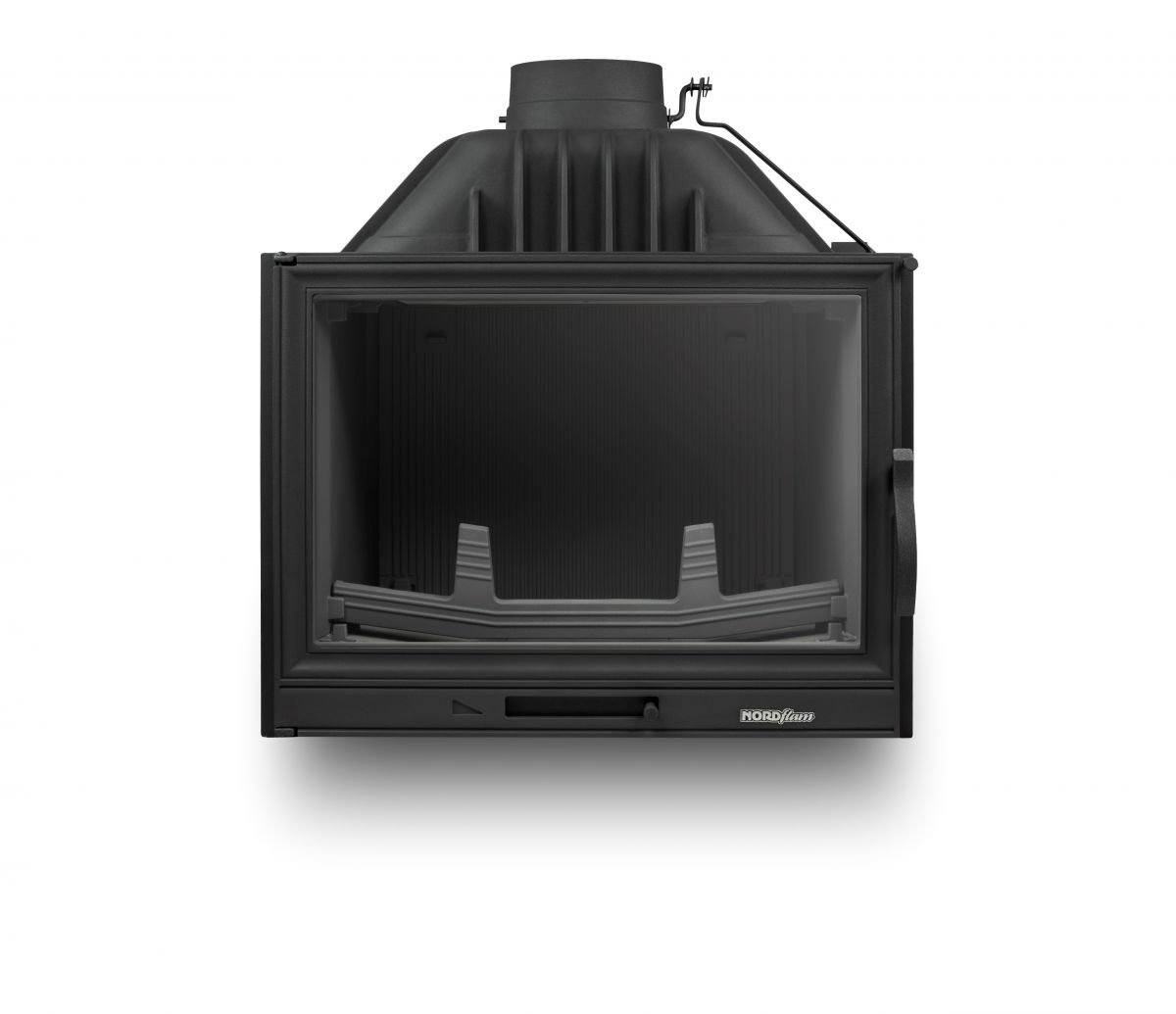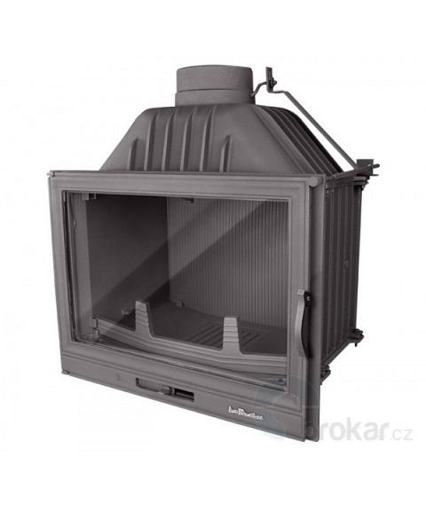 Litinová krbová vložka střední velikosti s rovným prosklením v jednoduchém hladkém provedení rámu se hodí i do modernějších staveb krbů. Celolitinové topeniště pro dlouhou životnost a odolnost dílů, rošt, popelník ve spodní části, zábrana proti vypadávání dřeva, komínová klapka. Sklo pyrolýza. Možnost napojení krbové vložky na centrální přívod vzduchu o průměru 100 mm – nutno dokoupit nástavec. Výkonná a levná krbová vložka z litiny.