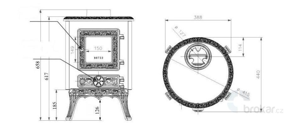 Tradiční menší litinová krbová kamna v elegantním hladkém designu s velkou plochou prosklení umožňuje nerušeně sledovat oheň. Produkt snadno připojíte na kouřovod a můžete se začít oddávat pohledu do plápolajícího ohně. Kamna mají celolitinové topeniště, litinový rošt, popelník pod roštem, systém čištění skla vzduchem, primární a sekundární regulátor. Litina je velice odolná, dobře šíří teplo po okolí a má dlouhou životnost. Kamna spojují vynikající kvalitu výrobního materiálu s originálním a působivým vzhledem a přijatelnými pořizovacími náklady.